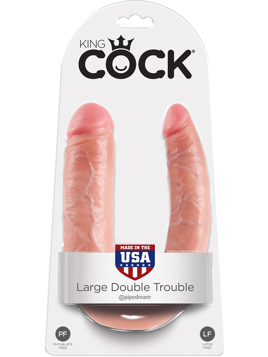 This realistic dildo is made for those of you who have always dreamed of being double penetrated. The dildo is made of phthalate-free and bodysafe PVC-material with well-marking glans and superficial veins, which means that you get exactly that realistic feeling you want. One shaft is slightly narrower (3,6 cm) to be inserted more easily anally, while the other, thicker shaft (4,6 cm) fills you vaginally.