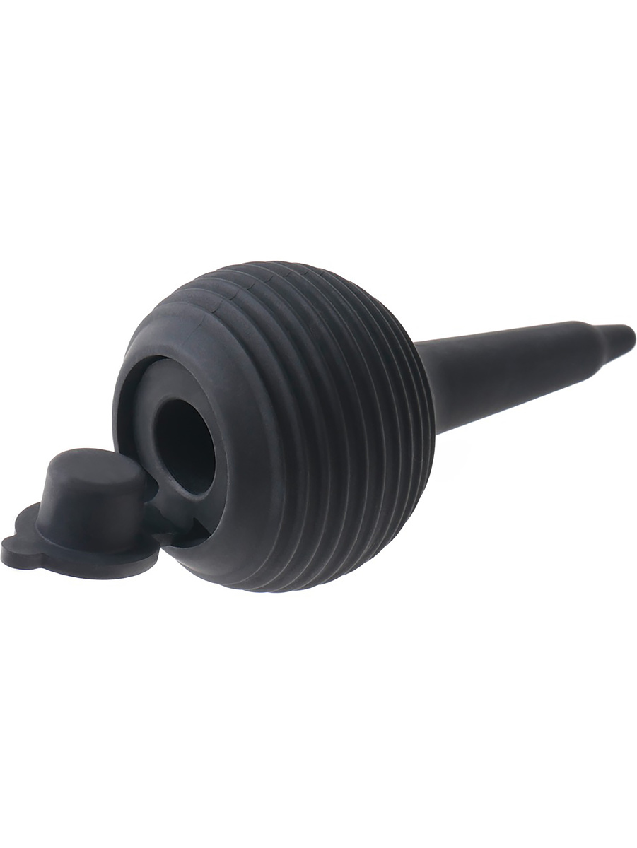 The black pump container is filled with liquid and then placed at the bottom of the dildo. When you then press the pump, the liquid will squirt out from the glans. The sexiest effect is if you use fake sperm as liquid. It is also perfectly possible to use water-based lubricant or water. It comes with a 59 ml bottle of the artificial sperm King Cock Jizzle Juice.
