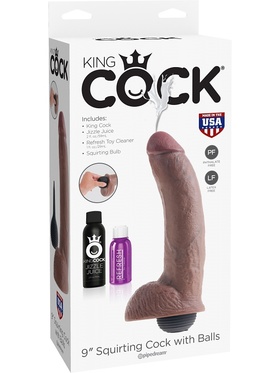 King Cock Squirting Cock with Balls, 23 cm, dark