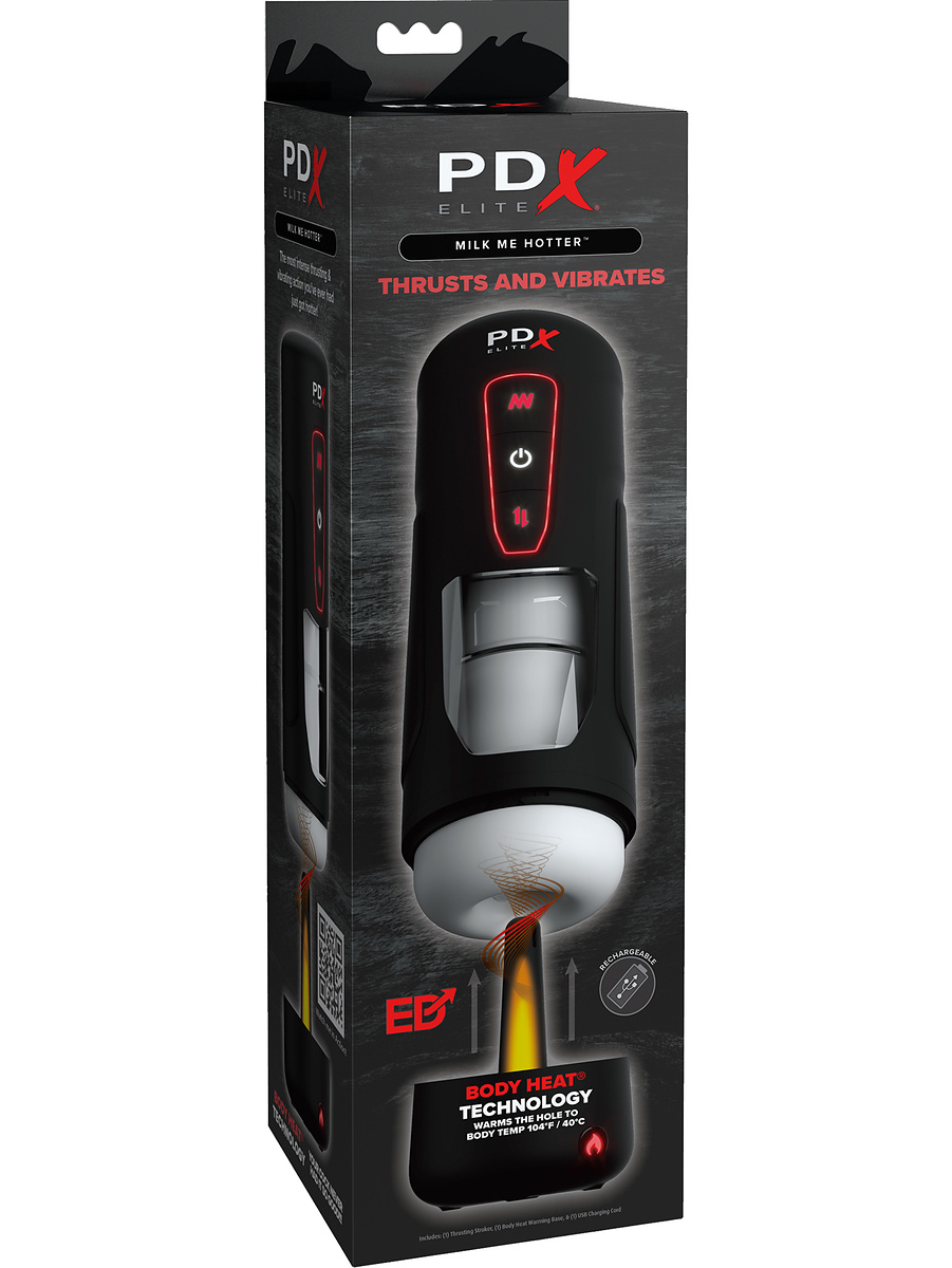 Milk Me Hotter enhances your masturbation-experiences with heat, vibrations and a powerful thrusting-function that creates the ultimate massage of your penis. Get ready for intense thrusting as it surrounds your penis with an automatic penetration-motion.