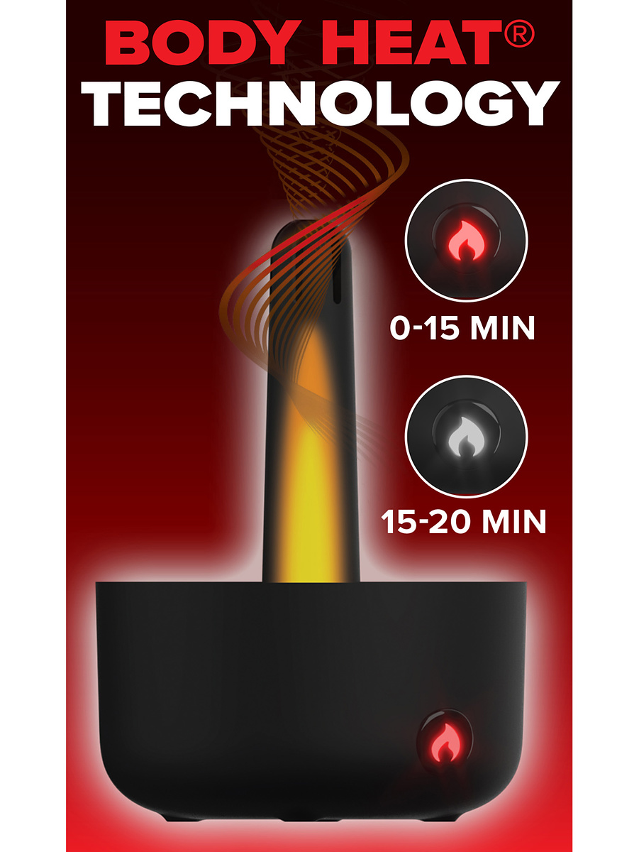 In the lid of the practical and discreet shell, there is a rod with Body Heat-technology that heats the opening to a comfortable body-temperature (40 degrees). We guarantee that the feeling will be even nicer.