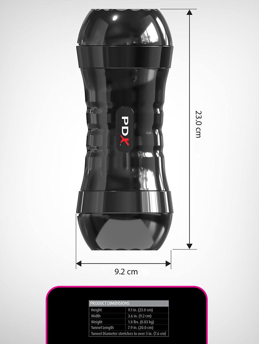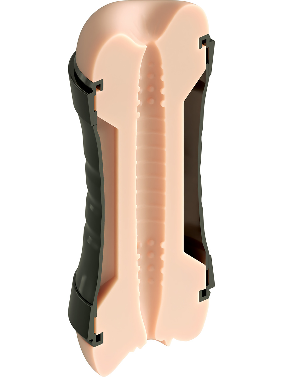 The stroker is made of the elastic and award-winning Fanta Flesh material, which offers a smooth and extremely authentic experience. On the inside there is also a stimulating texture that massages your penis as you penetrate it. The tunnel can be stretched to 7.6 cm in diameter.
