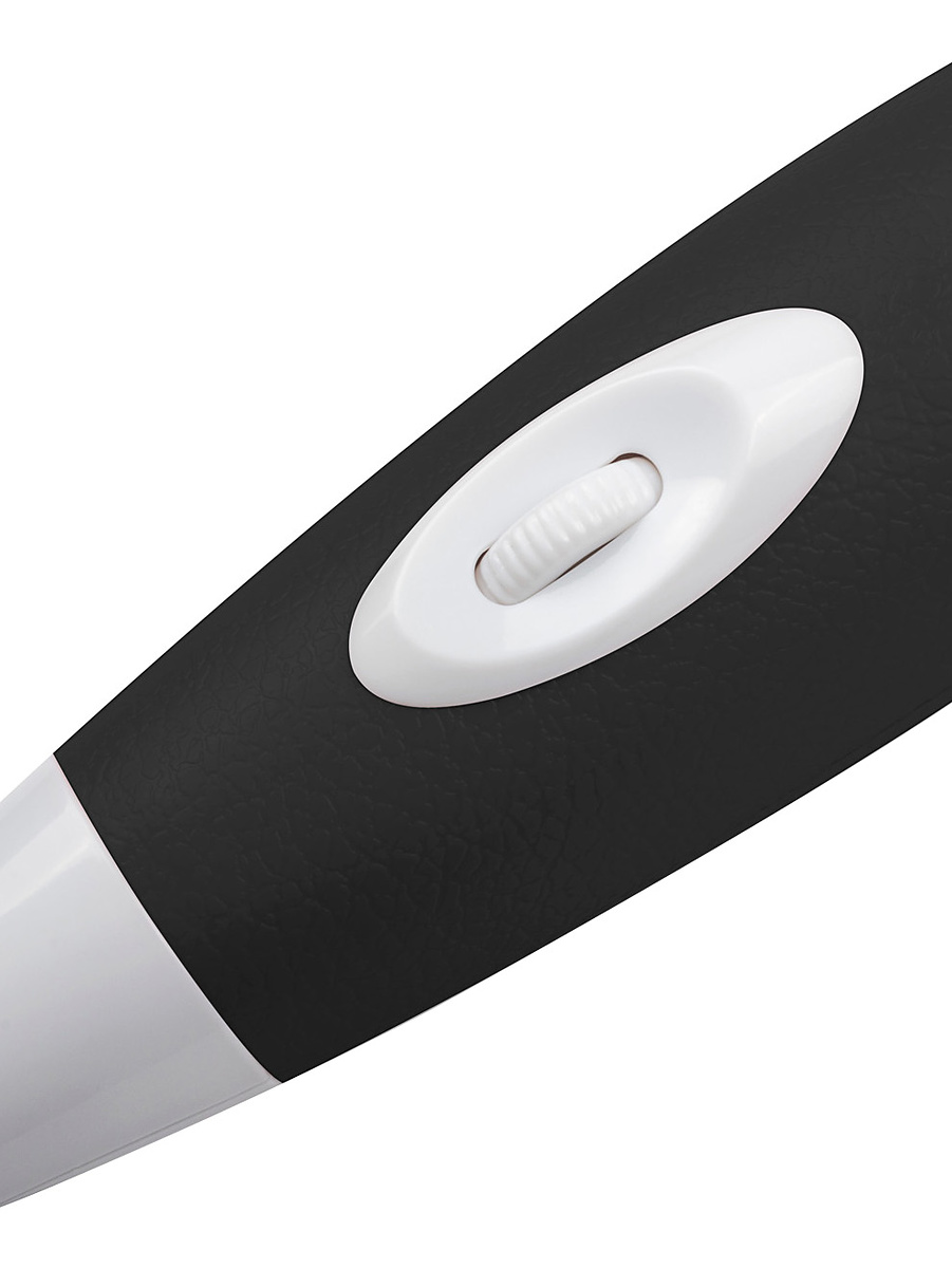 The Pixey Massage Wand is plugged in and powered by 220-volt current with a Swedish plug, which means constant power without running out of batteries. The 2 meter long cord gives you the freedom to use it wherever you want. The intensity is easily regulated with a small wheel on the handle, so you can adjust the vibrations exactly to your liking.