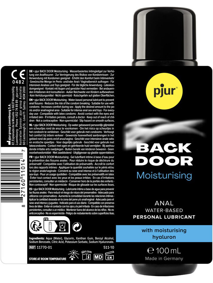Pjur Backdoor Moisturising is a premium water-based lubricant, specially formulated to provide longlasting, smooth glide during intense anal sex. Thanks to its unique formula with hyaluronic acid, it acts as a moisture-binding agent, meaning it doesn't evaporate as quickly as regular water-based lubricants.