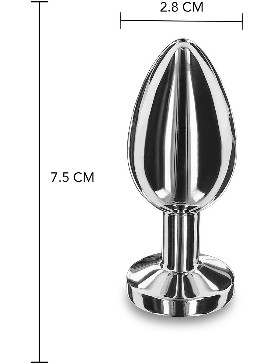 Stainless steel sex toys are a must have for sextoy-lovers! Let the weight and shape do the work and enjoy the unique sensations of the Weighted Steel Butt Plug. This butt plug has an egg-shaped design with a tapered top that provides a comfortable insertion. The wide base prevents your anal toy from slipping in too far while the transparent stone provides visual satisfaction and makes your plug into a stunning anal-decoration.