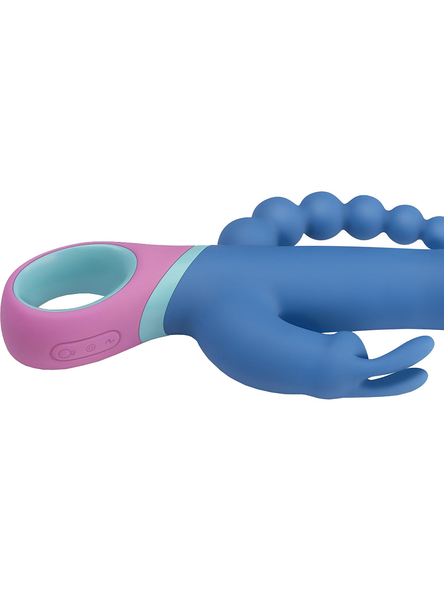 The thick, slightly curved shaft has a rotating function to give you a deep g-spot massage. At the same time, the rabbit stimulator with rabbit ears will tickle your clitoris with pleasant vibrations and the bead-shaped shaft will stimulate you anally.