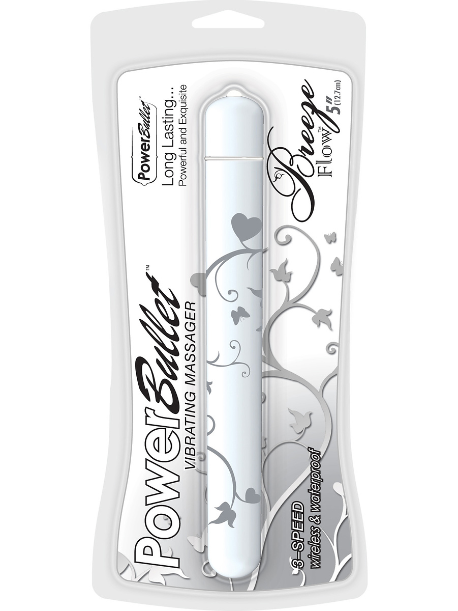Breeze Flow is an extra-long bullet-vibrator with a longlasting, powerful and single-stop PowerBullet-motor that delivers strong vibrations to your clitoris and other sensitive points. It has a delicious white color with beautiful patterns and lets you choose between three vibration-rates. The waterproof design allows you to be stimulated even in the shower or bath.