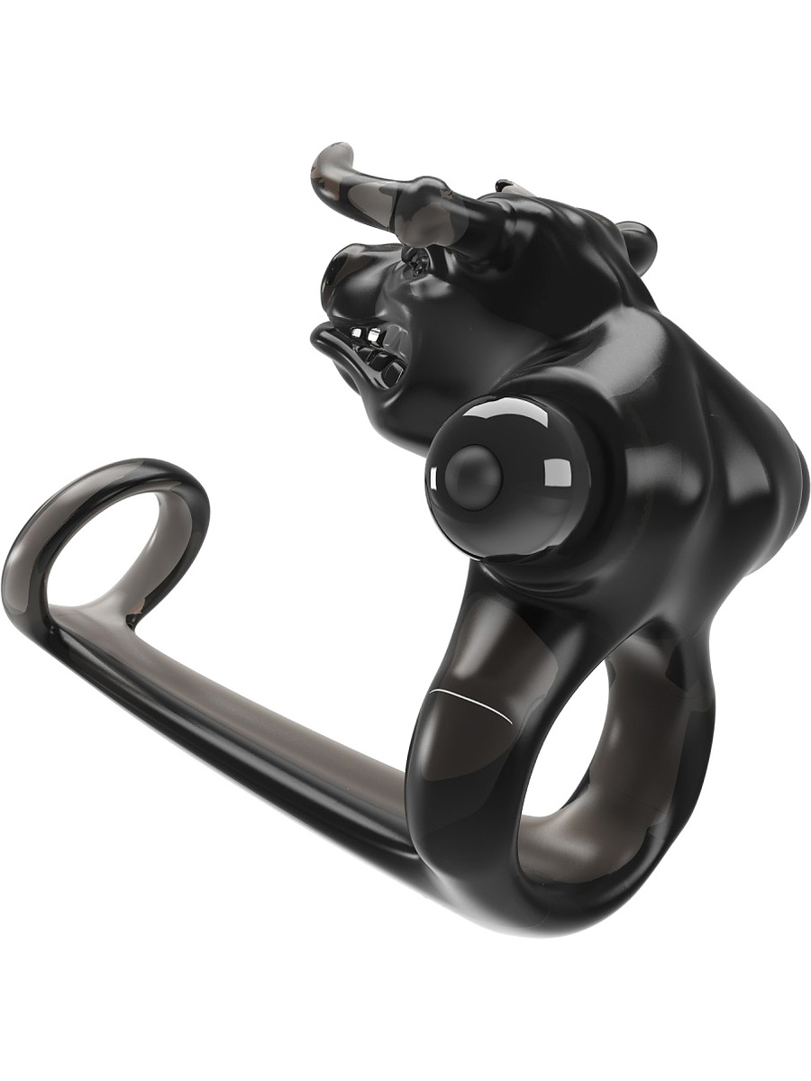The two rings around your shaft help you achieve a longer-lasting erection while the part under your penis provides extra support and girth for a partner to enjoy during penetrative sex. Your partner's clitoris will also be stimulated by the soft bull head and its lovely vibrations. With the button on the small vibrator you can choose between 10 exciting vibration-modes.