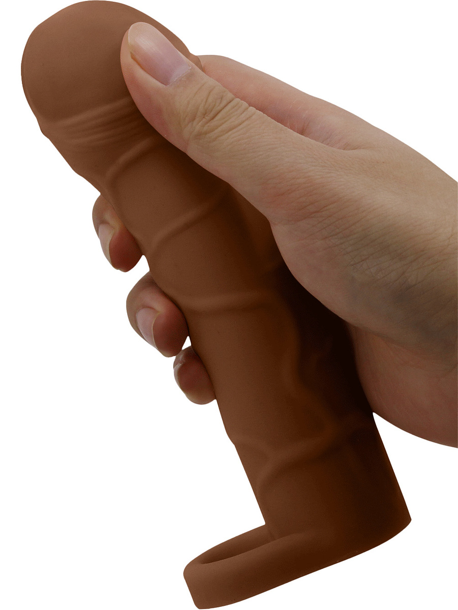 The penis sleeve has a solid top that extends by approximately 2.5 cm. It also has a comfortable scrotum ring that keeps the sleeve securely in place during penetration. The ring can also help prolong the erection.