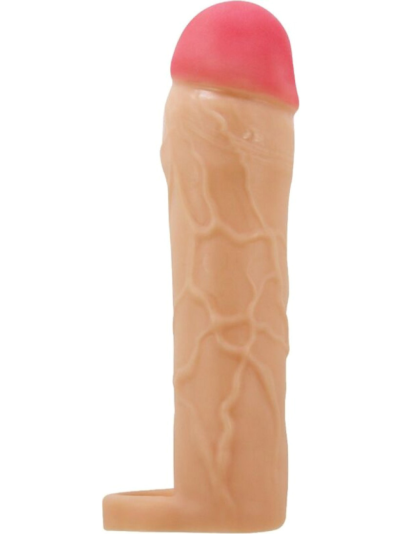 This is a realistic penis sleeve that makes you taller and up to 35% wider so you can fill up your partner properly. The lifelike TPR-material with a marked glans and pulsating veins is firm yet flexible to mimic the real thing.