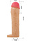 The penis sleeve has a solid top that extends by approximately 5 cm. It also has a comfortable scrotum ring that keeps the sleeve securely in place during penetration. The ring can also help prolong the erection.