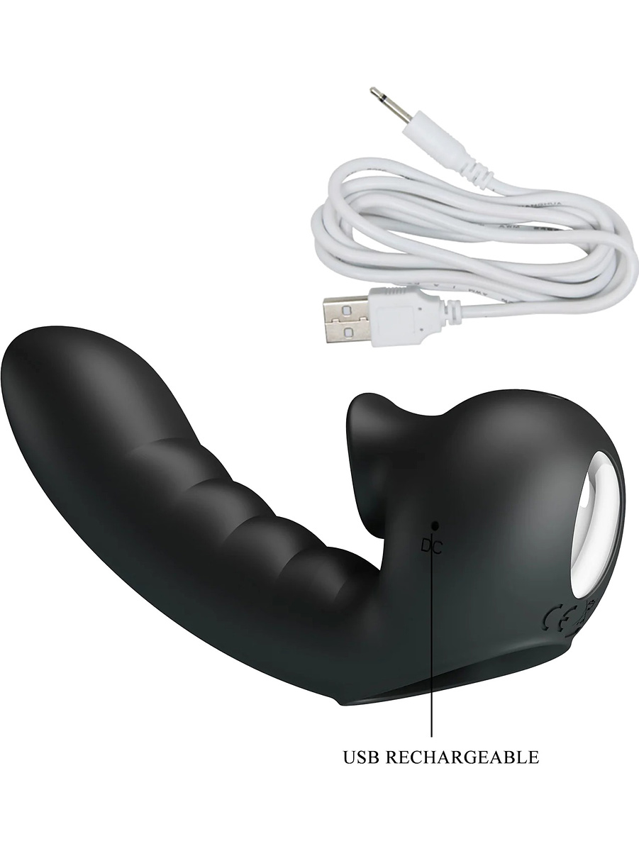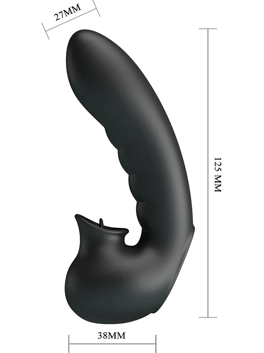 This compact yet versatile toy combines 12 powerful vibration-modes with 3 unique lick-settings. The vibrator is positioned at the tip of the sleeve to direct stimulation where it has the most effect – while the built-in tongue-shaped nozzle can be used to stimulate the clitoris with small, pulsating movements.