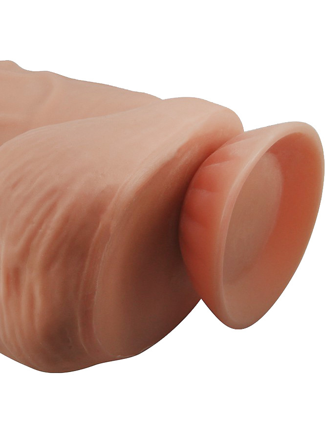 The dildo is made of soft TPR-material and has a marked glans, pulsating veins and a nice scrotum. At the bottom there is an effective suction cup that allows you to attach the dildo to flat surfaces to enjoy from different angles and positions, completely handsfree. The suction cup also makes it compatible with strap-on harnesses for exciting penetration-play with you partner.