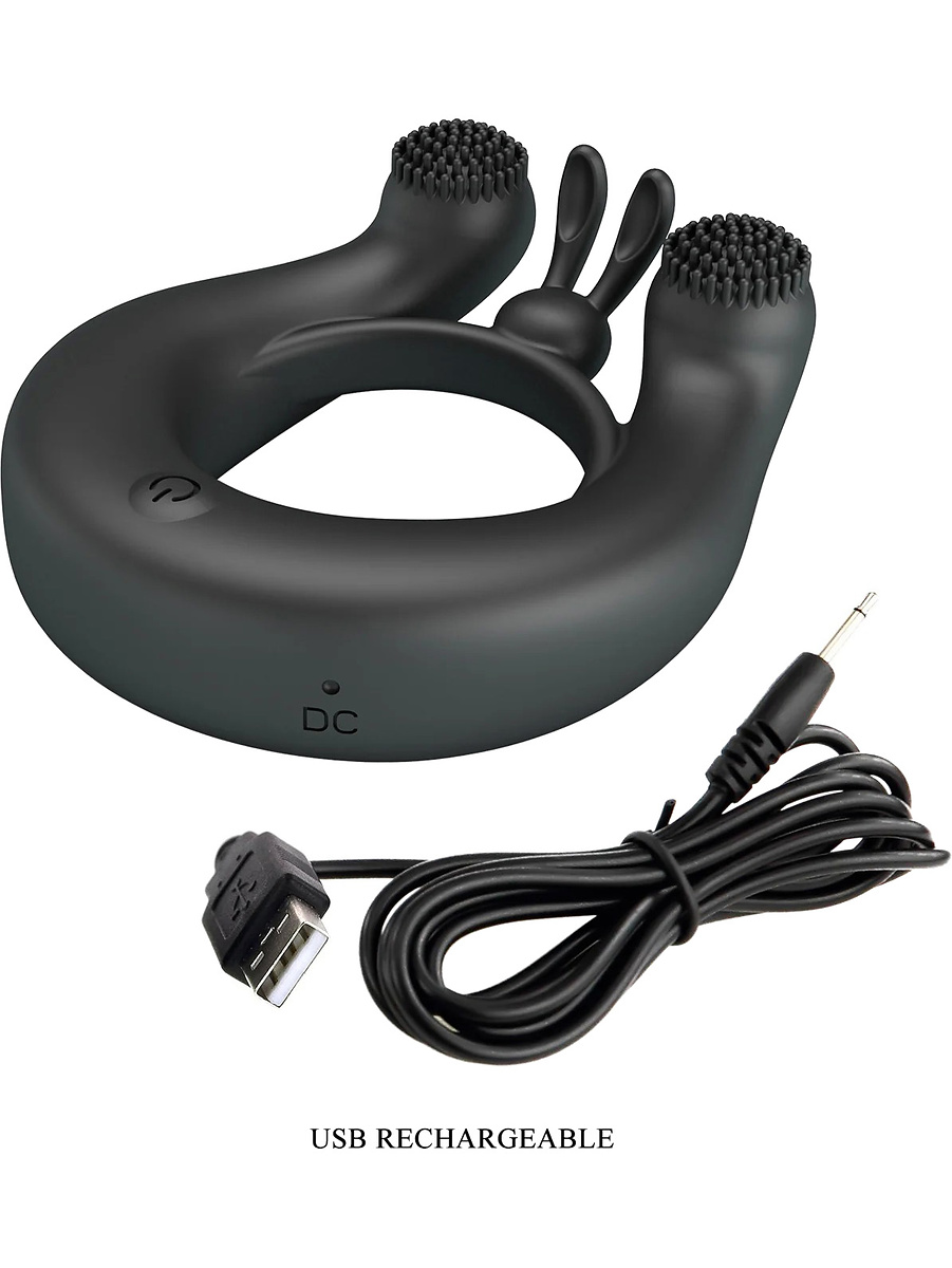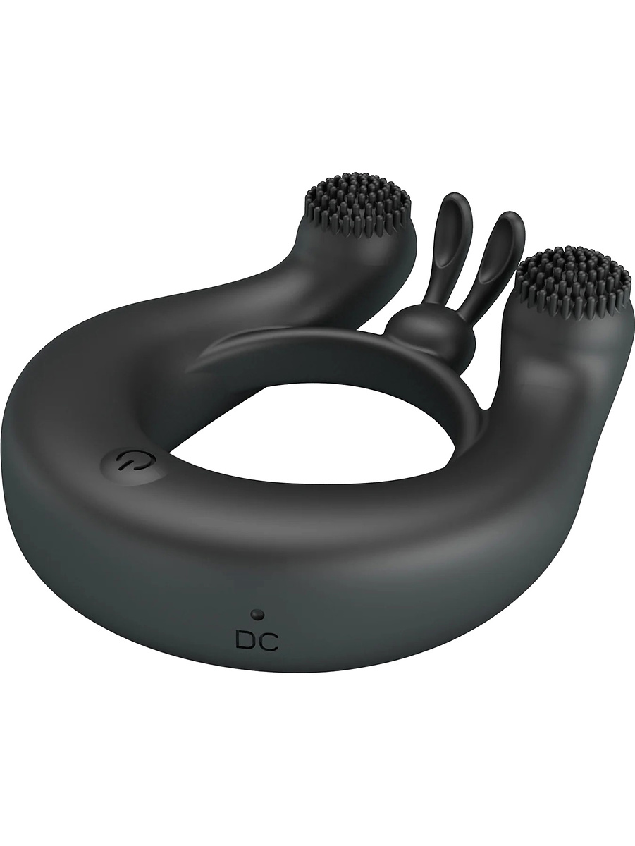 The ring is made of soft, bodysafe silicone with a slimmer, stretchy section that makes it easy to put on and take off. The part that faces your partner's clitoris has two soft bunny ears and knobby surfaces that amplify every movement - perfect for penetrative sex with extra stimulation.