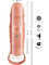 The penis sleeve is made of silky soft silicone and features a highlighted glans and pulsating veins for a realistic look and feel. Thanks to its stretchy properties, it fits most penis-sizes.