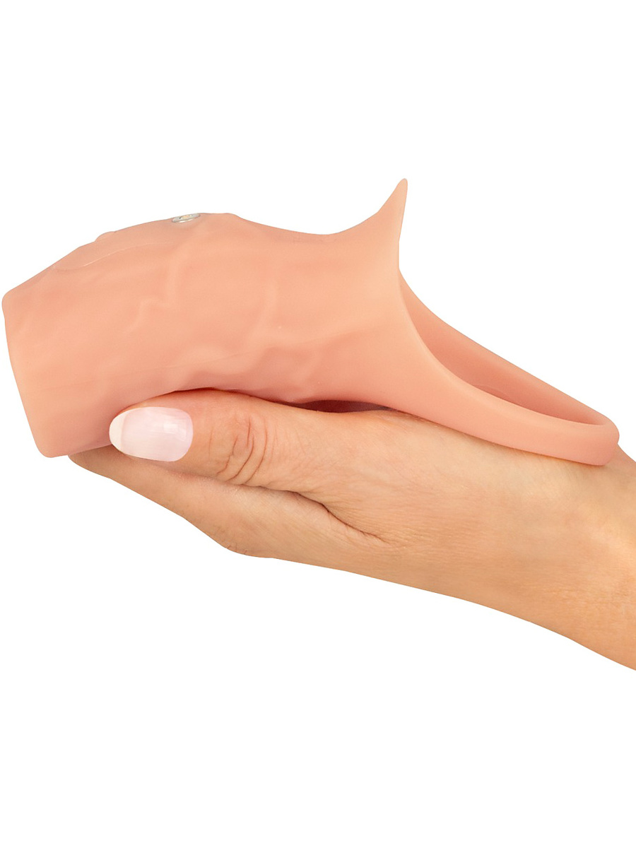 The penis sleeve is made of silky-soft silicone and has pulsating veins for a realistic look and feel. Thanks to its stretchy properties, it fits most penis-sizes.