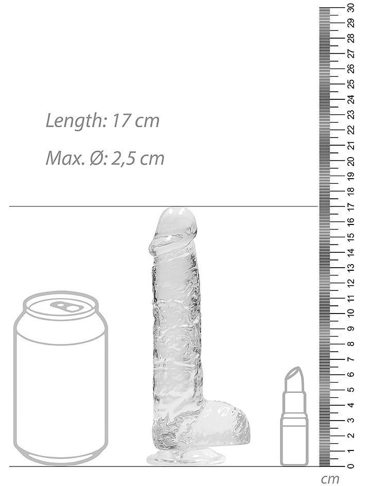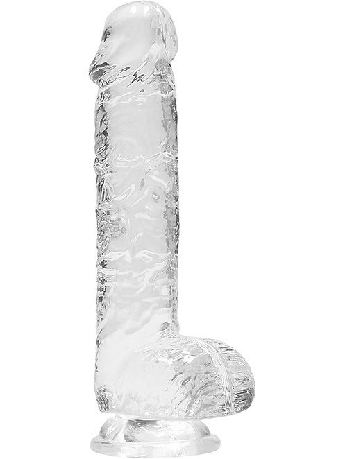 Crystal Clear from RealRock is a realistic and transparent dildo with marked glans, pulsating veins and scrotum for a realistic feel. The high-quality TPE-material is flexible for a pleasant feeling, the feeling is extra nice together with water-based lubricant.