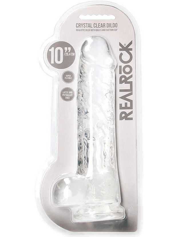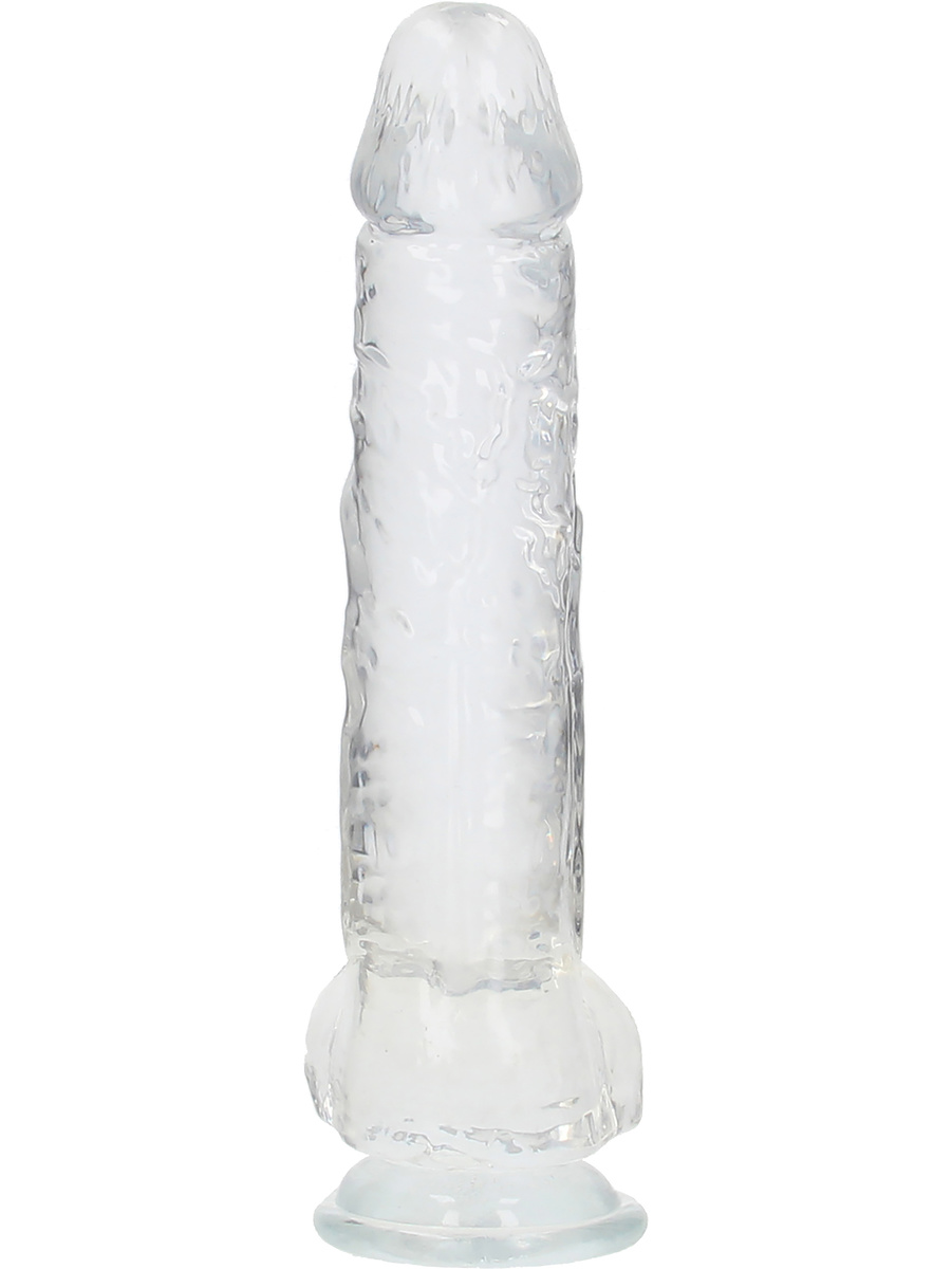 Crystal Clear from RealRock is a realistic, transparent and large dildo with marked glans, pulsating veins and scrotum for a realistic feel. The high-quality TPE-material is flexible for a pleasant feeling, the feeling is extra nice together with water-based lubricant.