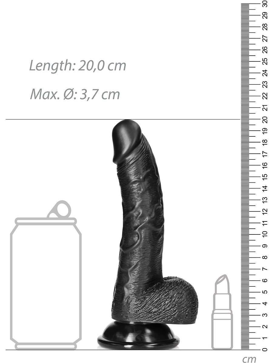 RealRock Curved Realistic Dildo with Balls, 18 cm, black