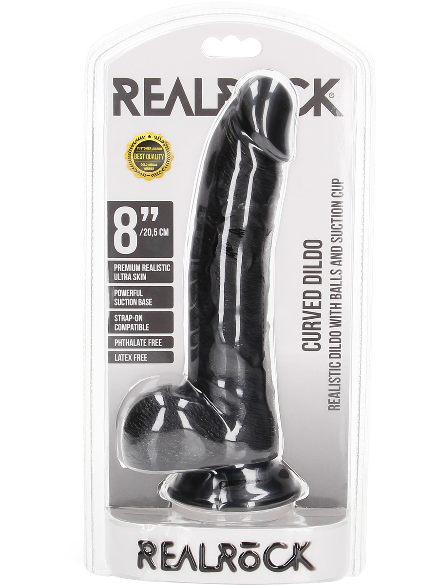 RealRock Curved Realistic Dildo with Balls, 20.5 cm, black