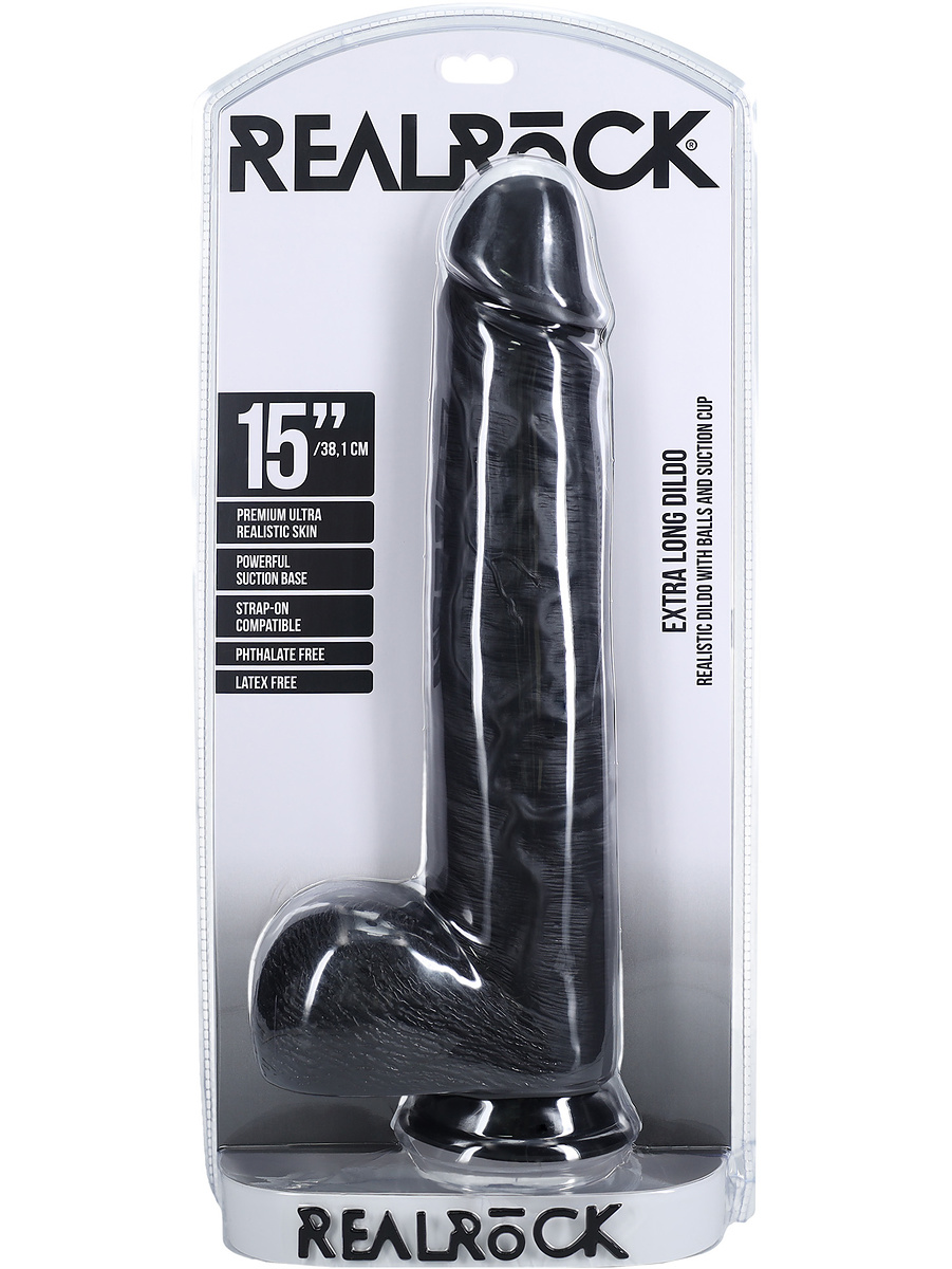 RealRock is an extra long and realistic dildo, designed to let you enjoy to the maximum. A firm dildo with a soft touch, a natural look and just the right size. Combined with the highlighted glans, pulsating veins and scrotum, this is a dildo you won't want to be without.