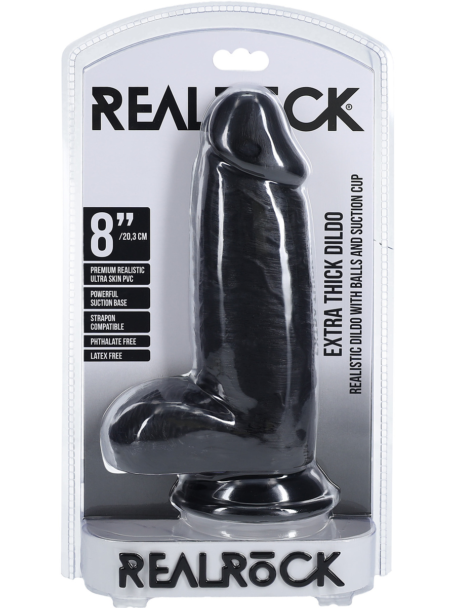 RealRock is an extra thick and realistic dildo, designed to let you enjoy to the maximum. A firm dildo with a soft touch, a natural look and just the right size. Combined with the highlighted glans, pulsating veins and scrotum, this is a dildo you won't want to be without.