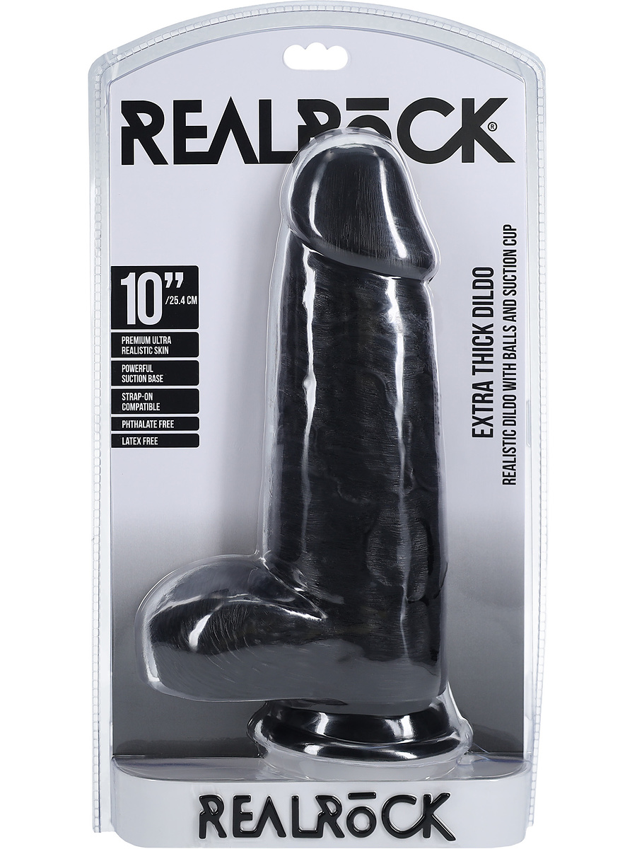 RealRock is an extra thick and realistic dildo, designed to let you enjoy to the maximum. A firm dildo with a soft touch, a natural look and just the right size. Combined with the highlighted glans, pulsating veins and scrotum, this is a dildo you won't want to be without.