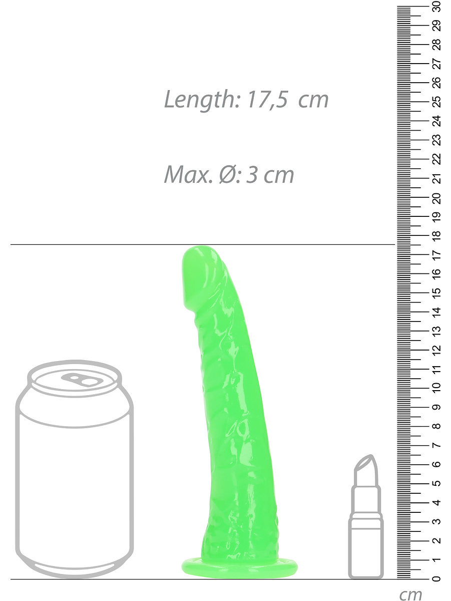 This is a realistic and luminous dildo that gives you exciting pleasure and extra playfulness in the dark. The slightly curved dildo has realistic details in the form of a marked glans and pulsating veins that increase the stimulation. Any light source will then activate its luminescent properties!