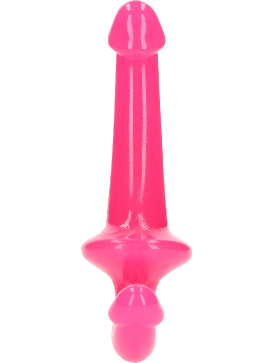 Place the smaller dildo (11 x 2,5 cm) vaginally and penetrate your female or male partner with the larger dildo.