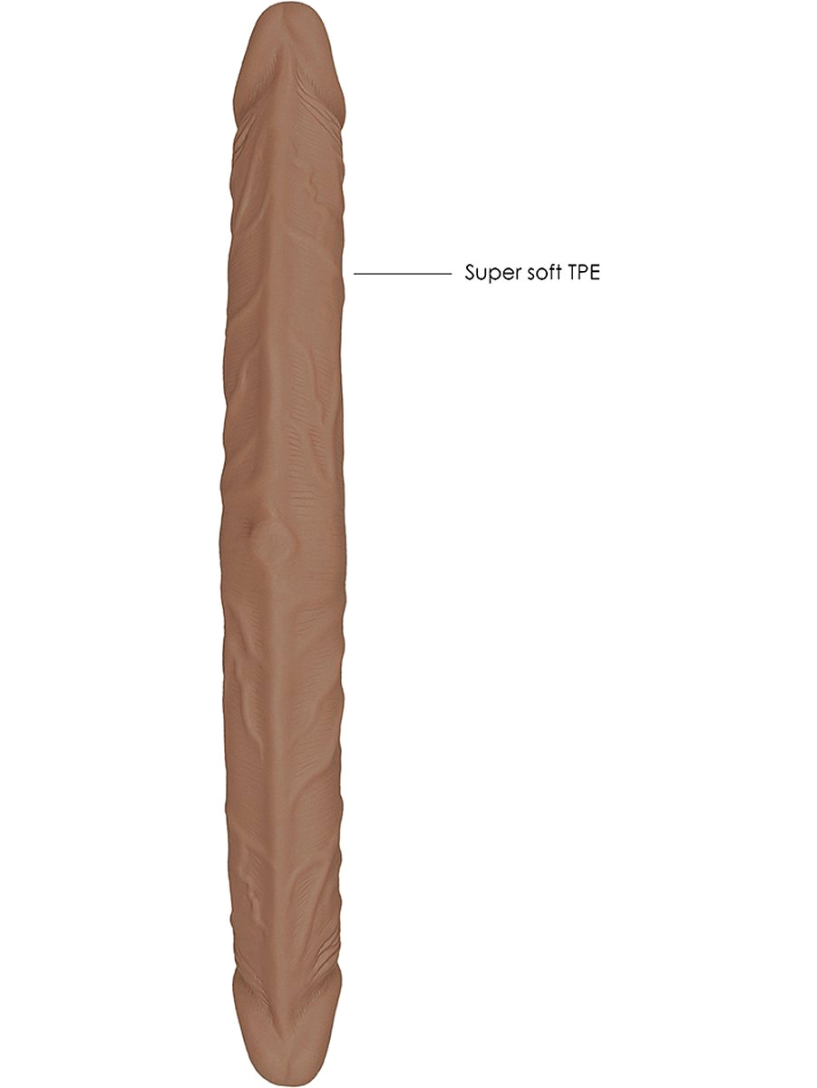The double dildo is extremely flexible, silky-smooth and realistic with highlighted glans and pulsating veins. The very realistic shapes, textures and colors make it both feel and look very real.