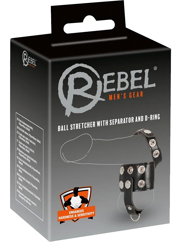 This is a Ball Stretcher with a penis strap and wide scrotal strap. It also has a strap that separates your testicles. The penis-strap is placed around your penis and scrotum to give you a stronger and longer-lasting erection. The wide scrotum-belt with separator will then push the scrotum down for an intense stretch.