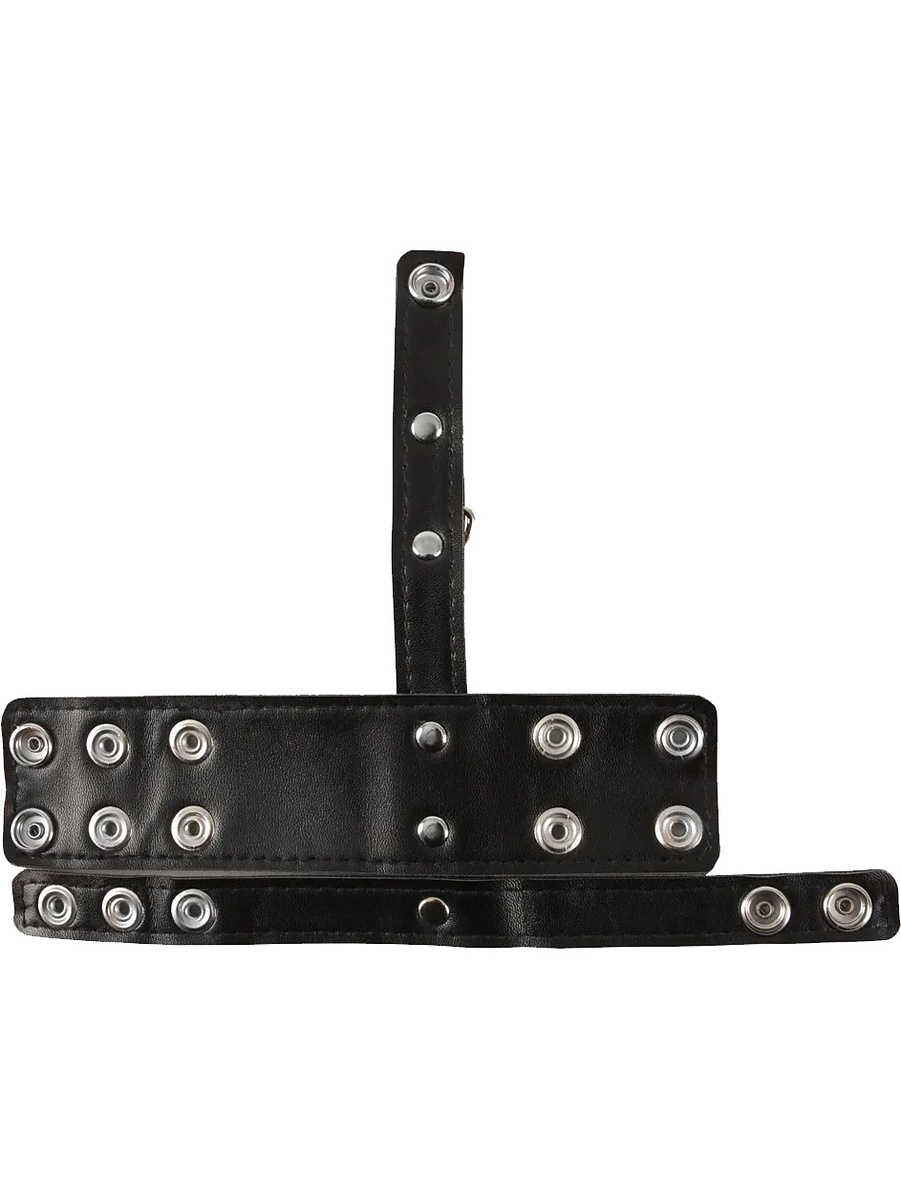 The product has a masculine leather-look with a D-ring where you can attach weights or a leash (not included) for extra kink. All straps can be adjusted with the snaps for a perfect fit. The push-buttons also make the product easy to put on and take off.