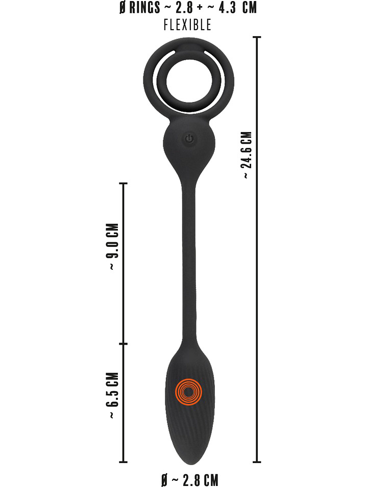 This unique toy combines a penis- and scrotum-ring with a vibrating anal plug that can be controlled via the wireless remote. With a range of 15 meters, it is perfect for both solo-moments and partner-play.