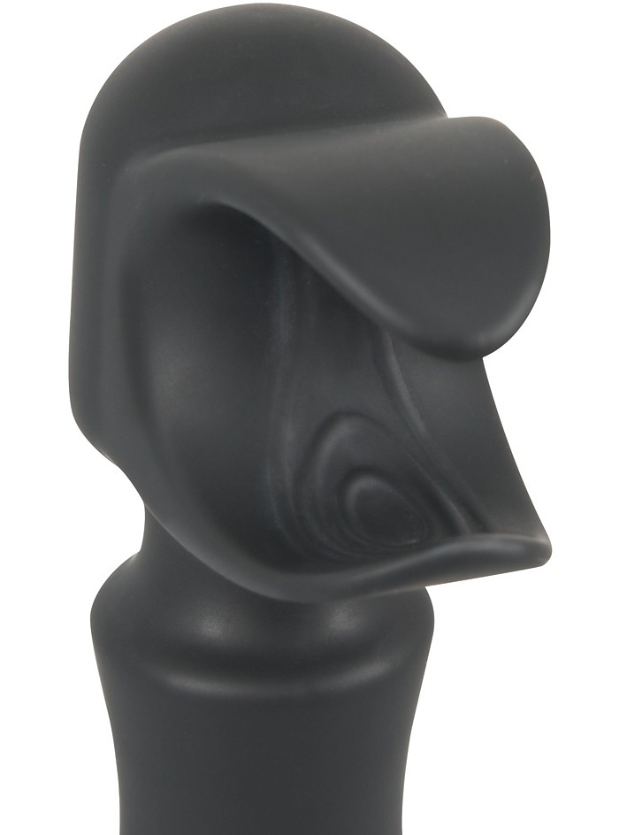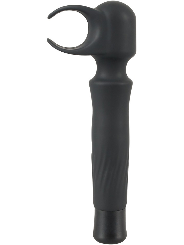 The semicircular part is a flexible masturbator-ring with stimulating grooves on the inside. Use it to stimulate your glans (and frenulum) or shaft with lovely vibrations. You can also place it around the scrotum for an exciting stimulation.