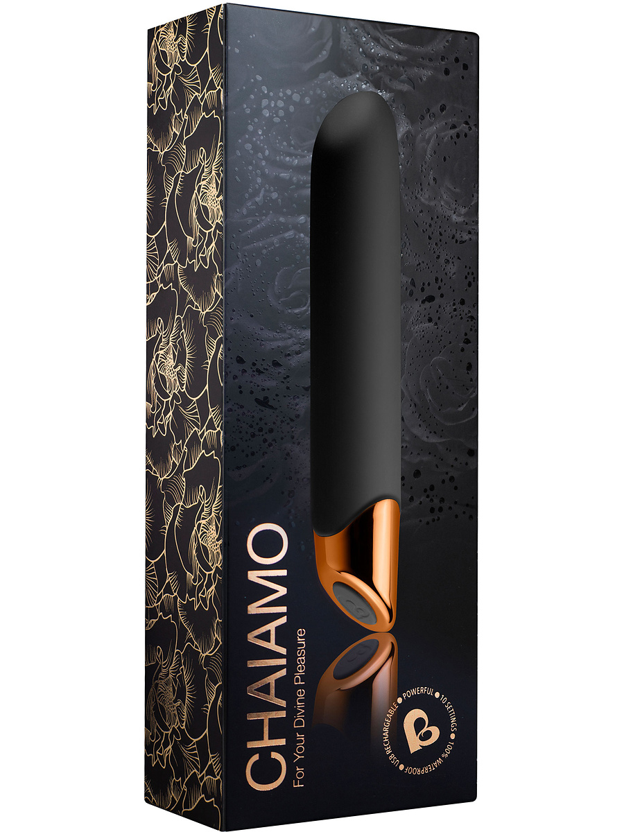 The tapered tip allows you to easily direct the stimulation exactly where you want it. Choose from 10 deep vibration- and pulsation-modes that send waves of pleasure through your entire body. The silky-smooth black silicone surface feels wonderful against the skin, and the chrome-plated plastic at the base adds an extra touch of luxury. Chaiamo is also waterproof, allowing you to enjoy it in both the bath and shower.