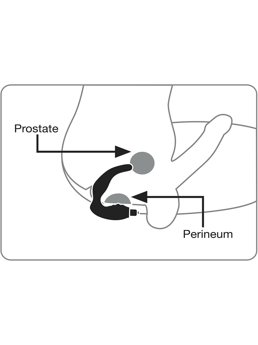 You carefully insert the prostate-stimulator into the anus and start its vibrations using the push-button located at the bottom of the wand. The small silicone-band that holds everything together is equipped with small knobs that, thanks to the vibrations, stimulate the sensitive area between the scrotum and the anus, known as the perineum.