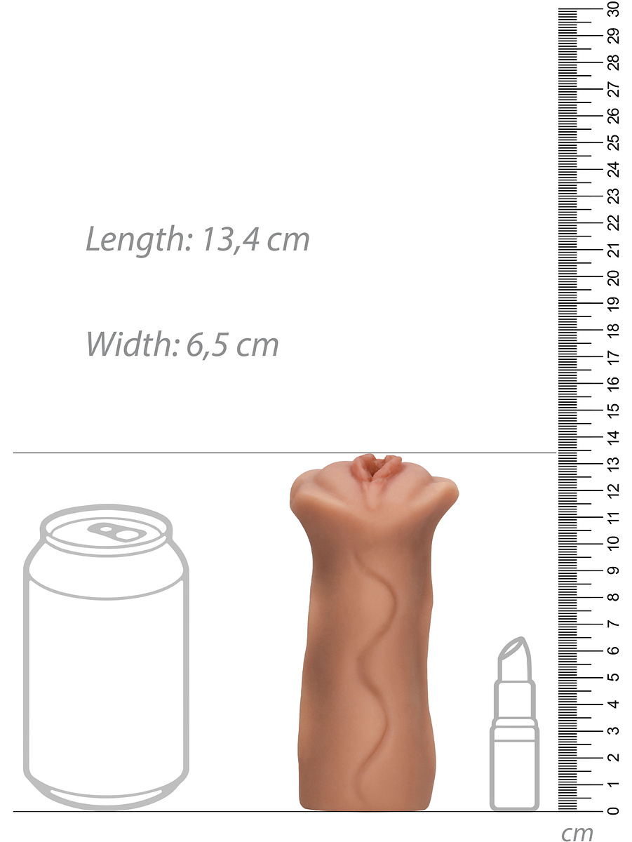 The masturbator is made of first-class TPR-material that gives an incredibly real feeling together with water-based lubricant. The vaginal opening is inviting and inside you are greeted by stimulating textures that mimic the real thing. Press with your hand for an even tighter feel.