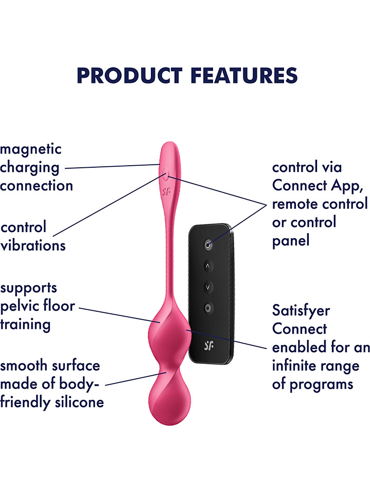 The powerful motor also means that your G-spot is stimulated during exercise. Control its preset vibration-modes via the wireless remote or the button on the strap. If you want to explore more functions and maximize your training and experience, simply connect the toy to your smartphone via the SATISFYER CONNECT-app.