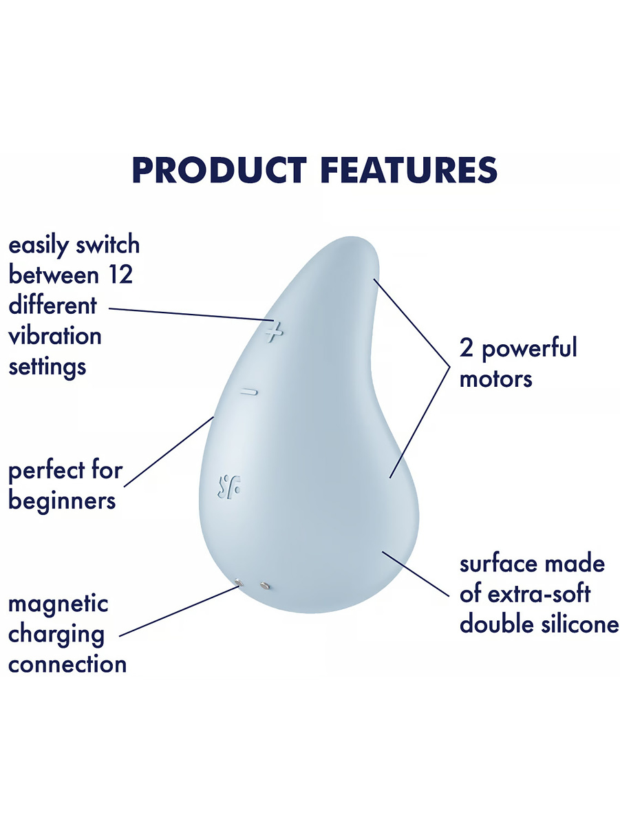 The Dew Drop from Satisfyer is a stylish Lay-On-Vibrator that lets you experience an intimate adventure in mini format. This drop-shaped vibrator is compact, stylish and designed with a super-soft double layer of silicone for a pleasant touch.
