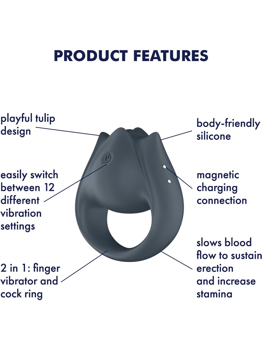 The button on the toy lets you choose between 12 exciting vibration-modes that provide a wonderful variety. Its compact and playful tulip-design also makes it great for beginners.