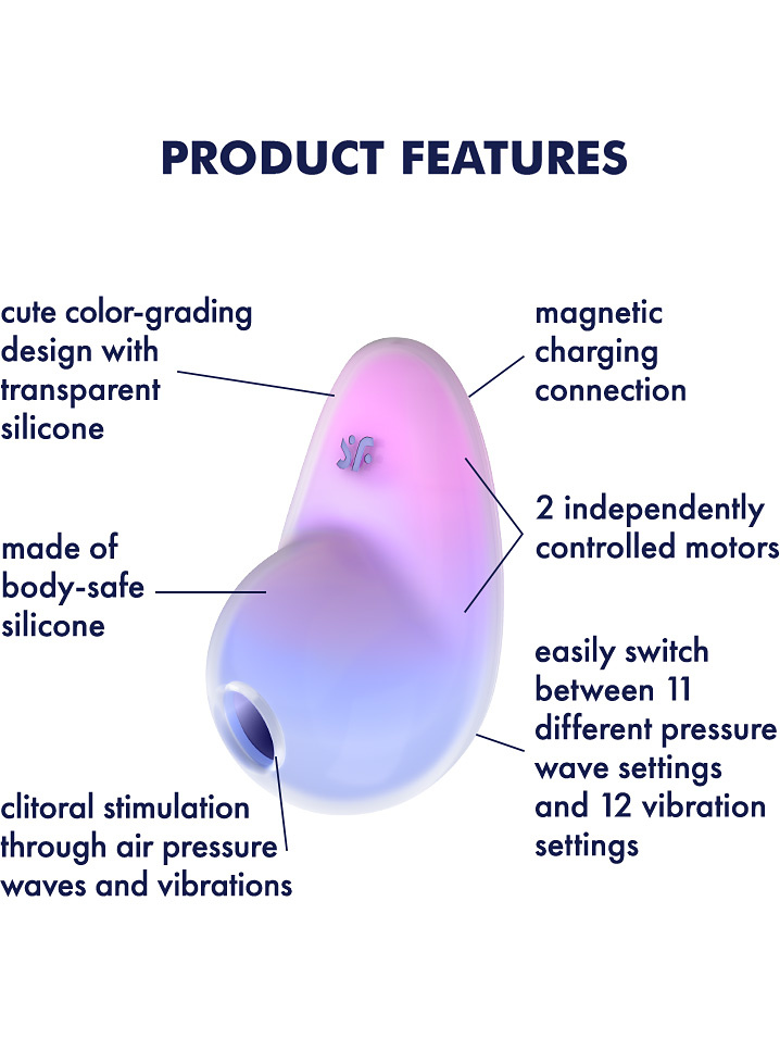 The small opening pleasantly embraces your clitoris to stimulate with pressure waves without direct contact. With a total of 11 intensity-levels, you can decide for yourself how intense the feeling should be. You can also combine the pulsating pressure waves with strong vibrations - choose between 12 exciting vibration-modes. The functions can be controlled separately via the buttons on the toy for a customized experience!