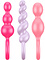 One plug has a ball-shaped design with three balls in size like an anal chain, the smallest at the top. The second plug instead has two, slightly more egg-shaped balls, while the third has a helical design. All plugs have a ring at the bottom which both acts as a handle and prevents the plug from getting too far in.