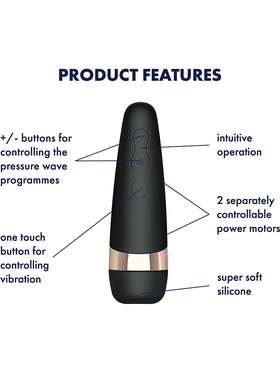 This version takes the stimulation a step further. In addition to pressure waves, it also delivers pleasurable vibrations. These are controlled separately which allows you to choose how you want to enjoy the moment. You can also choose from a total of ten different vibration programs. It has two motors that are both very quiet.