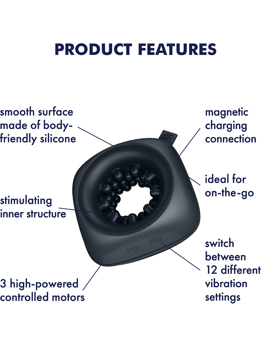 Are you looking for a compact and flexible masturbator? Then the Ring Stroker from Satisfyer is the perfect choice! This vibrating masturbator is not only practical and travel-friendly, it will also pamper you with three strong motors and stimulating textures in soft silicone.