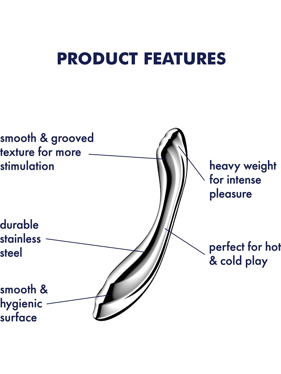 Made from solid, bodysafe stainless steel, the Pure Gravity 2 exudes a sense of exclusivity and precision. The wide, curved shape is designed to provide targeted G-spot stimulation, while the soft wave texture intensifies every movement. The double-ended design allows for variety, whether you're focusing on internal or external pleasure.