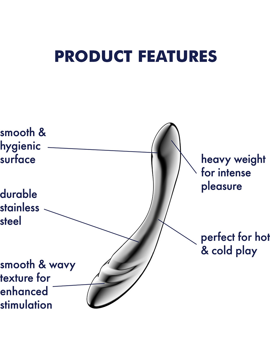 This exclusive dildo is made of solid, bodysafe stainless steel, which provides both a luxurious feel and a long lifespan. The material is non-porous, hygienic and easy to clean – perfect for those who want both quality and function. Its mirror-like surface glides easily against the skin, whether you use lubricant or not.
