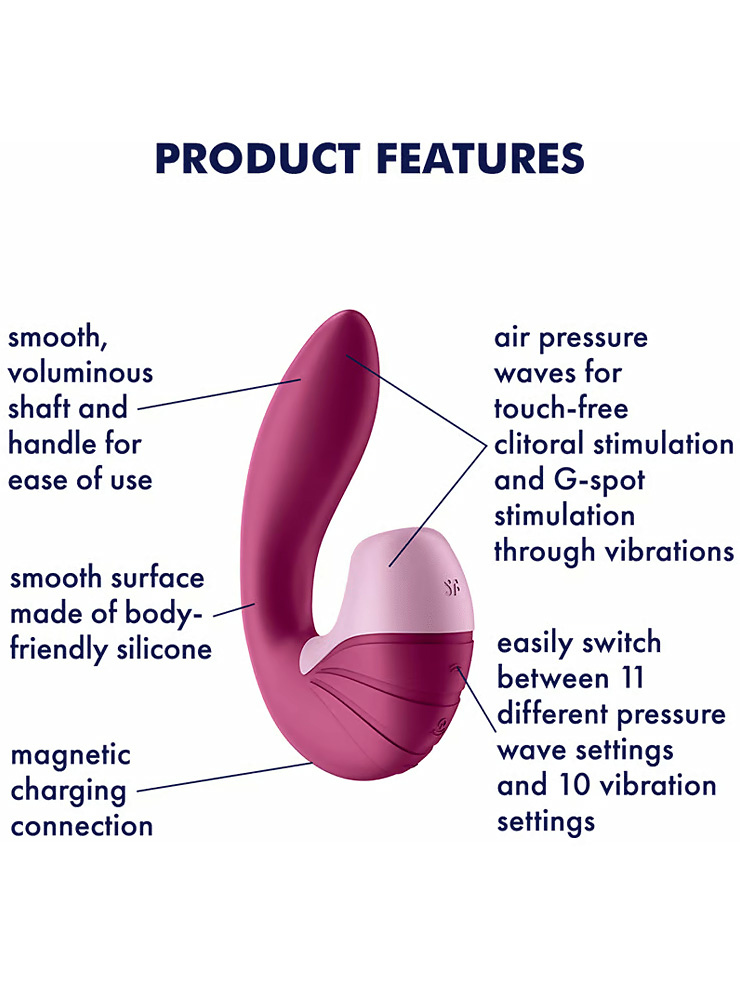Satisfyer Supernova is an absolutely fantastic sextoy that stimulates your clitoris with sensational pressure-waves and the G-spot with strong vibrations. Simply an air pressure-vibrator and G-spot vibrator in one!