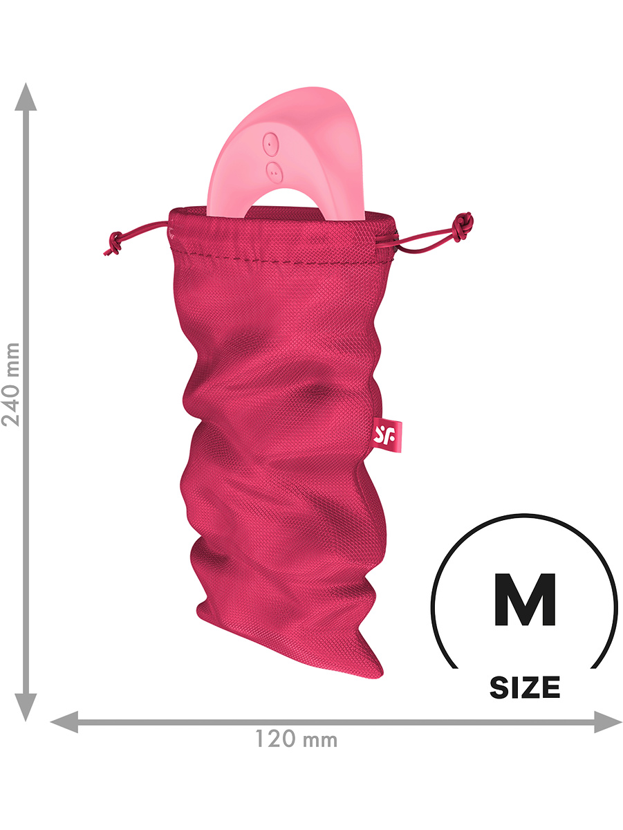 Treasure Bags are available in sizes M, L and XL making them compatible with all Satisfyer-toys, large and small. Size M is excellent for smaller-sized toys such as lay-ons, butt plugs, kegel balls, small vibrators, cockrings, etc.