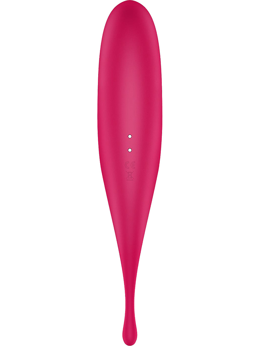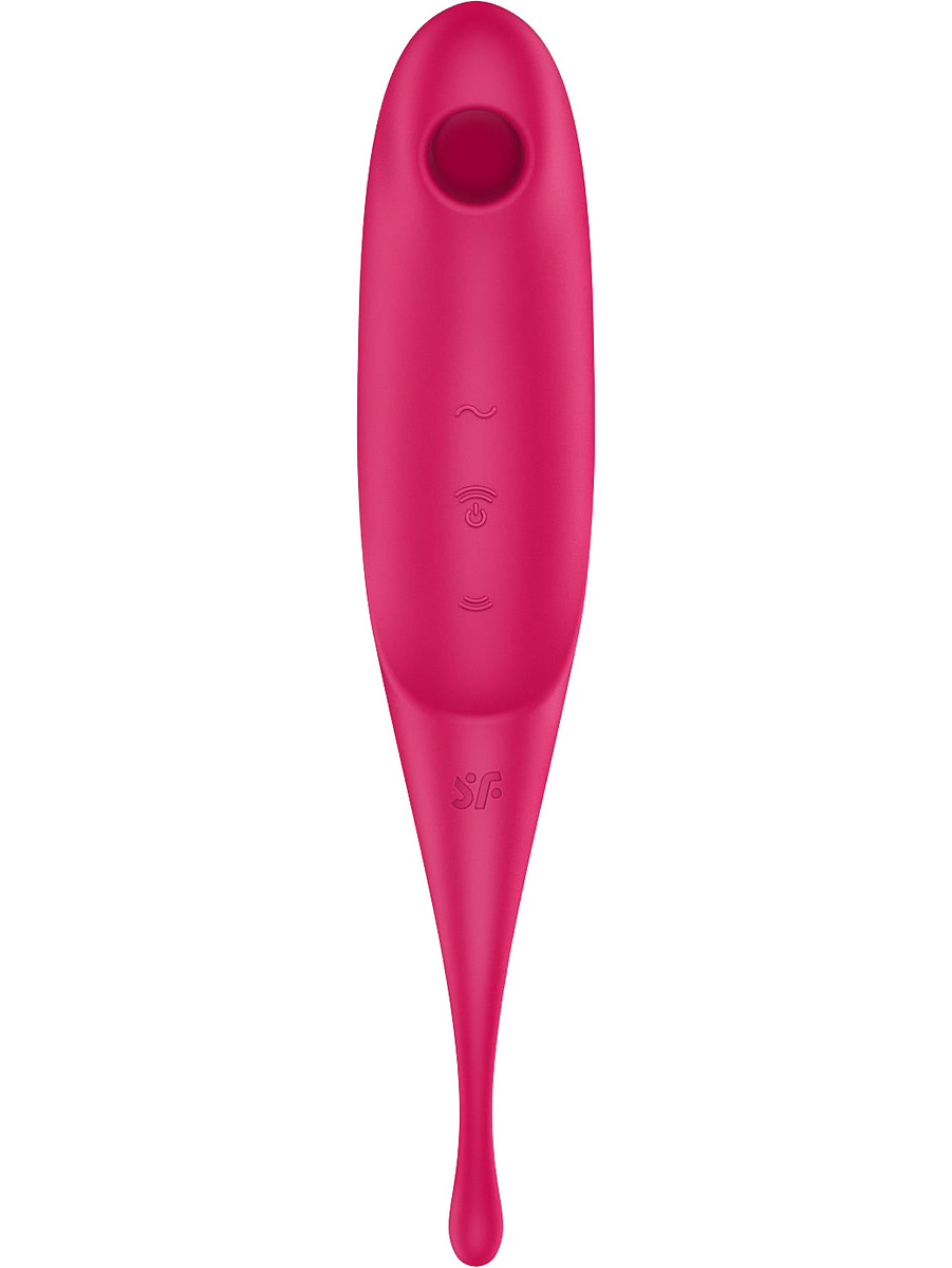 The Satisfyer Twirling Pro is a multifunctional vibrator that offers both a narrow tip with vibrating/circulating stimulation and a nozzle with pulsating air pressure. Two unique ways to stimulate the clitoris that both feel absolutely fantastic!