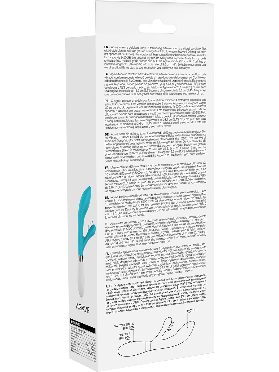 Agave gives you that little something extra. With a classic rabbit design, it stimulates your insides and clitoris at the same time. The shaft is slightly curved with a plump top that targets the G-spot. The clitoris stimulator also has three small tongues that take you on a wonderful journey to orgasm heaven.